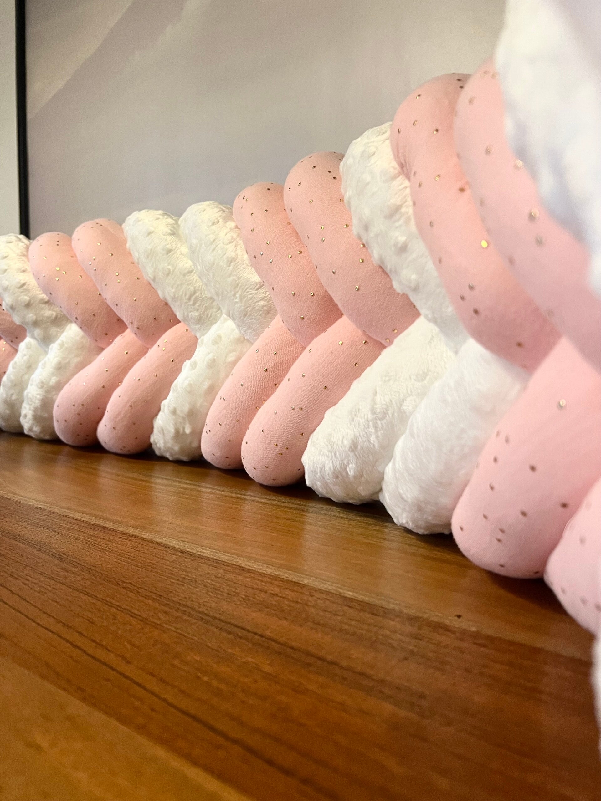 Le tour de lit Épi est un accessoire décoratif et sécurisant conçu pour apporter douceur, confort et élégance dans la chambre de bébé. Grâce à sa forme tressée et à sa hauteur de 28 cm, il protège efficacement les bords du lit tout en créant un cocon rassurant. Ses textures moelleuses et ses coloris délicats apportent une atmosphère chaleureuse et tendance à l’espace de sommeil de l’enfant.
